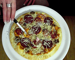 Some of you weak wimps lamented that I am a too strict and heartless. Certainly I am and will ever be, ha ha... But I also have my gentle side. It`s your luck that I don`t slaughter my obedient paypigs when I can milk them. See me in this exceptional clip preparing for you filthy little bottom a divine pizza-topping. While your are kneeling at my divine feet I am smoking and I like to garnish your slavepizza with the ashes of my holy cigarette. Imagine the **** cigarette that I am squeezing out on your disgusting pizza is burning the skin of your dirty slavebody! I know that my little human ashtrays are addicted to my divine cigarette butts. Beg to be allowed to eat them out of my full ashtray from the last weekend! Here they are, all over your pizza! Be aware that you have to pay for every butt. And this one with lipstick will cost the double. Fine, this disgusting pizza is really appropriate to you! Perhaps a little bit too dry. Merciful I am spitting my snot all over the pizza and I even wet it with my divine liquid which you dirty slavepig adore so much. And now after I have added my used chewing gum as the finest delicacy and the maximum of my fun and your humiliation I am garnishing your slavepizza with my cut toenails. Look some are even red polished! Is this not a fine slavepizza? I know you will pay all your hardly earned money for the honor to be allowed to eat this holy pizza. 1000 Euro is a fair price! Fair for me ha, ha...Hopp, hopp! Pay quickly filthy paypig so that there are not growing maggots out of your pizza...