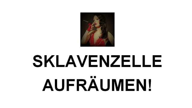 Vor Wochen habe ich meiner Sklavensau aufgetragen, seine Sklavenzelle aufzuräumen und immer sauber zu halten und heute komme ich kontrollieren. Es sieht aus wie im Schweinestall und dies muss natürlich bestraft werden. Somit zerstöre ich zunächst das über Monate gebaute Kunstwerk - eine mit Zigarettenschachteln beklebte Hundehütte und tobe mich richtig aus. Wenn schon Schweinestall, dann richtig! Nach meinem Besuch wird sich das Aufräumen nun richtig lohnen. Soll ich auch dir Ordnung beibringen? Gib mir deine Schlüssel!